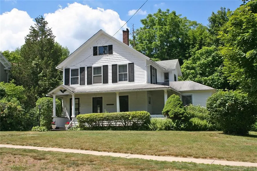 An older Colonial home in need of updating. Newer boiler (2008) oil tank and hot water heater. 2nd floor was an in-law; kitchen still in place but can be made into a bedroom. Full bath on each level. Welcoming front porch, private back yard, storage shed. Walk to village center - Cafe, library, shops, Post Office, Air Line Trail. Supermarket, schools, places of worship nearby.