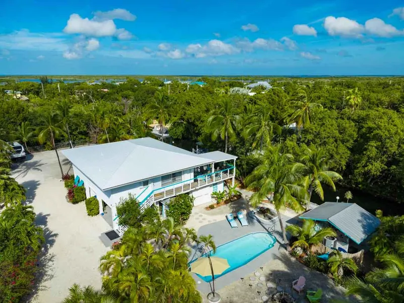 Privacy and tranquility abound at this exceptional Port Pine Heights pool home, situated on an expansive, fenced-in triple lot boasting over half an acre! Enjoy two concrete docks, complete with 10K boat lift, and no-bridge access to world-class boating and fishing within minutes! Inside, the airy open concept floorplan feels bright and spacious, and is flooded with natural light. Oversized sliding glass doors lead out to a large covered balcony, an ideal backdrop for grilling your fresh catch while enjoying views of the pristine pool and canal below. A recently updated kitchen features sleek quartz countertops, stainless-steel appliances, gas range, large pantry, and abundant storage. Retire to a generous primary suite with spacious walk-in closet, en suite bathroom, and patio access. Guests will enjoy comfortable accommodation in either of two well-appointed guest bedrooms and large guest bathroom. Additional upgrades include new roof (2022), new electrical, ceiling fans, can lighting and generator, new energy-efficient ductless A/C (2023), tankless hot water heater, and new exterior paint and siding. Entertain like never before, this manicured lot features new lush tropical landscaping, and a large in-ground, concrete, salt water pool with ambient twilight lighting. Visit with friends around the coral rock fire pit and take-in the blanket of stars above. The neighboring lots are government-owned, ensuring that this lot feels abundantly secluded and private. A spacious covered carport provides plenty of room for parking or shaded entertaining space. The sprawling lot offers a plethora of room for open parking, trailer or RV storage. An additional bonus storage space, along with three additional sheds, allow for keeping tools and equipment dry and secure. Enjoy unparalleled peace and privacy at this incomparable Big Pine Key retreat. Call to schedule a tour today!