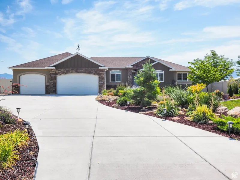 Beautiful West facing rambler! Exclusive Gated Community in Great Neighborhood with Mountain Views. 4 Bedroom, 3 bath, Office on Main could be 5th bedroom. Basement finished 2024. Open floor plan with Vaulted Ceilings and Great Room. Kitchen featuring Granite countertops, soft close cabinets and drawers. Plantation Shutters. Large master suite with a walk-in closet the size of a bedroom, Double sinks and garden tub. Half Acre lot with Large RV Parking for all your Toys, Plus an Oversized 3 car garage! Fully Fenced and beautifully landscaped and sprinklered yard, 2 fruit trees, nectarine and cherry. Irrigation water is $200 per year. Mountain views, and secondary irrigation water. This home ia better than new with a finished basement and amazing fully landscaped yard with over 40K spent in yard last year. Show great! Call agent for details!