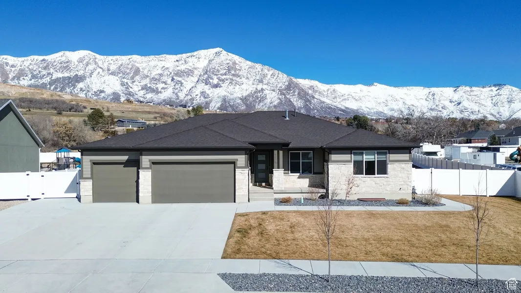 Discover this stunning 6-bedroom, 3-bathroom home in Pleasant View, offering more than new construction ever could! Built in 2022, this immaculate property sits on a spacious .51-acre fully fenced lot with panoramic views of Ben Lomond Peak. The thoughtfully designed interior features a spacious and functional kitchen, complete with a huge walk-in pantry. The luxurious master suite boasts a separate tub and shower, double sinks, and a large walk-in closet. The walkout basement is ready for your vision, featuring a second laundry and rough-ins for a second kitchen, plus a large cold storage room. Outside, over $100K in landscaping and concrete has already been done, including an enlarged back patio, full auto sprinklers, and an RV pad. Additional upgrades include blinds, ceiling fans, and a fully finished 4-car garage. This home truly has it all-plus the refrigerator, washer, and dryer stay! Don't miss this rare opportunity to own a beautifully upgraded, move-in-ready home in a prime location!