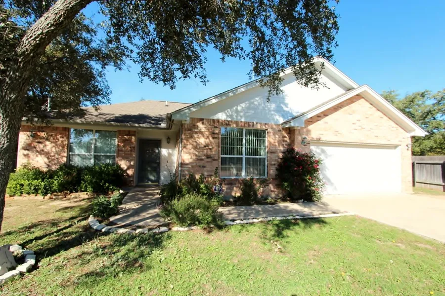 Charming home nestled among trees on a 1/2 acre lot! Open floor plan with lots of upgrades including wood and tile flooring throughout, granite and tile countertops, covered back patio, and 4 sides masonry. Large kitchen with island and oversized breakfast area opens into the family room. Part of garage converted to office or "man cave" but can be converted back. Backyard is beautiful with amazing tree coverage & additional patio for entertaining. Kids attend the acclaimed Liberty Hill schools.