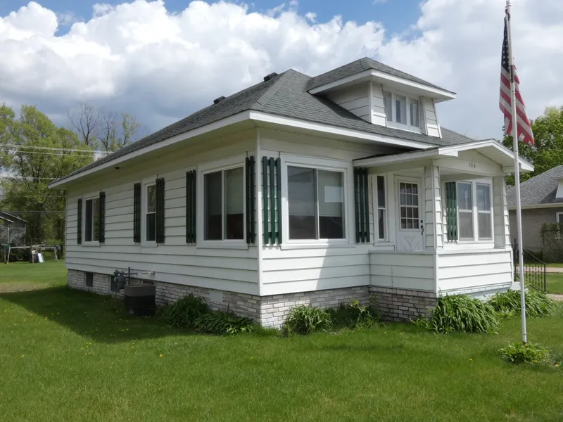 Cute and comfortable single story bungalow. Inviting front porch leads to spacious living room, bedroom and an extra room that could be a 3rd bedroom. Continue back to the attractive kitchen with dining nook, main bedroom and full remodeled bath. All appliances stay with this home. Updated throughout and most recently some new windows and new water heater. Laundry is in the full, very functional basement which is well lit and great for many uses. Bonus level backyard space with patio over half an acre to play, garden or expand. Short walk to local downtown stores and conveniences. Truly move-in ready and waiting for you. Take a look today.