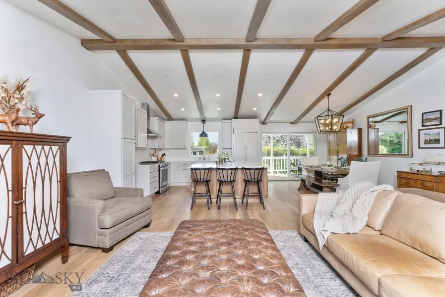 Welcome to this beautifully remodeled home in the coveted Wylie Creek Estates, where Montana living meets modern elegance. As you step through the front door, you're greeted by a stunning entrance leading to a bright, open-concept living and dining area, featuring gorgeous hardwood floors. The space is bathed in natural light, highlighting the fully remodeled kitchen with sleek quartz countertops and custom cabinetry. Overhead, the exposed wooden beams add a touch of rustic charm to this contemporary setting. Upstairs, youll find two spacious bedrooms and a renovated full bathroom plus a luxurious primary en-suite. The primary boasts a custom-designed closet, while the en-suite bathroom offers a spa-like retreat with a free-standing soaking tub, walk-in tiled shower, and dual split vanities. Head downstairs to a cozy family gathering space, with a nearby nook thats perfect for a home off...