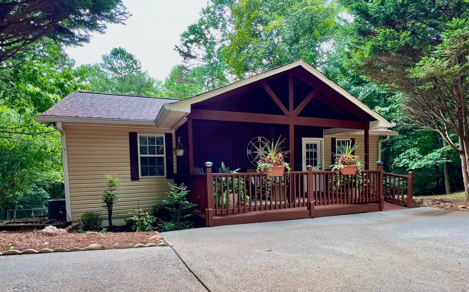 Now being offered furnished and turn key!! NEWLY RENOVATED RANCH CABIN only minutes from Downtown Ellijay! This beautifully renovated home has two beds and two full baths on the main with refinished pine floors, new stainless appliances, granite countertops, vaulted ceilings, and a gorgeous corner gas log fireplace. Open concept from kitchen and dining into living space. Ramp entry and everything (including laundry) on main level for easy one-level living. All paved circular drive with a side strip of additional parking. Back deck is perfect for grilling, with an additional screened porch attached. New 3 ton HVAC. The vaulted open and inviting front porch is a great place to relax and enjoy the wildlife in this calm, peaceful resort. A 3rd bedroom with wardrobe and full bath are in the finished basement, with a flex room that could be a 4th bedroom or living area. Walk out on to the pati...