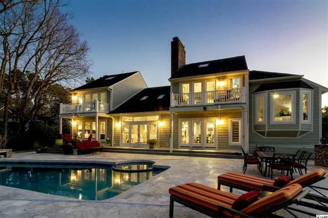 Enjoy the tranquil surroundings from this amazing home that truly has it all. This 5 bedroom modern home is located in one of Myrtle Beach's hidden gems...Green Lakes. 133 Green Lakes overlooks Arcadian Shores Golf Course and one of its beautiful lakes. The awesome saltwater pool is heated and is surrounded by a gorgeous pool deck and summer kitchen. The pool also has an electric cover that makes for easy maintenance. This modern home has soaring ceilings and tons of windows, which allows for an amazing amount of natural light to enter the home. The kitchen features unique countertops, a gas stove top, a walk-in pantry and a new refrigerator. The master suite has a private balcony overlooking the pool and backyard, a great walk-in closet, and an amazing bathroom. Watch your favorite movies in the home theater and shoot some pool in the billiards room with wet bar. This home features grea...