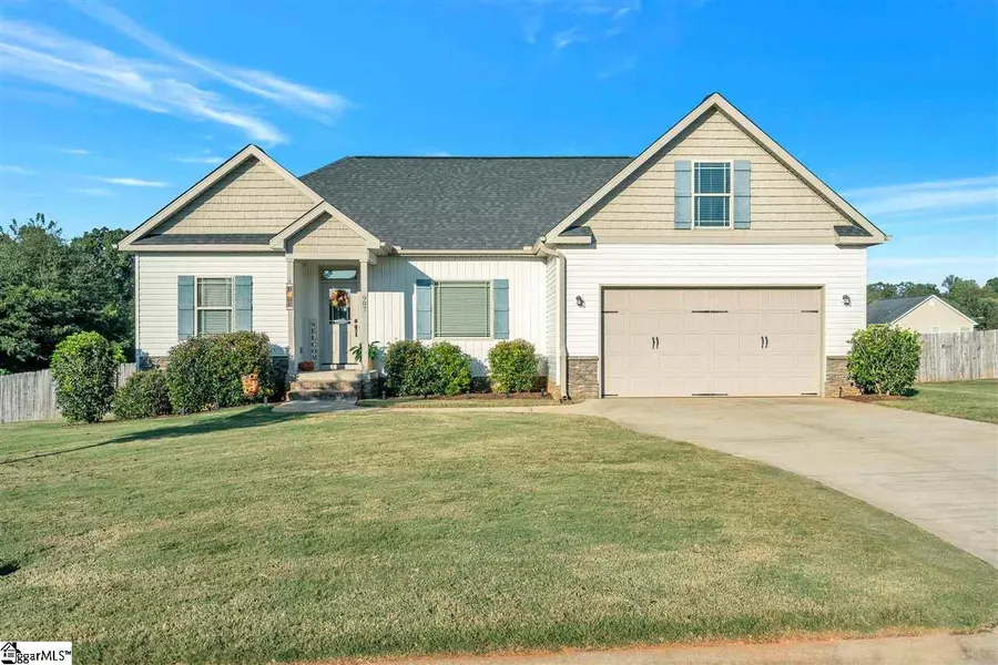 Ranch style home with bonus room above the garage, on just over half an acre. Custom home built in 2013 this home is filled with details and upgrades you will love! Vaulted great room is spacious and features a stacked rough ledge stone corner fireplace. Eat in kitchen comes complete with a pantry and detailed cabinetry with SS appliances plus a convenient breakfast bar. Split bedroom plan offers privacy for the family. Second and third bedrooms share a full bath. Master offers a trey ceiling and a well appointed master bath with a separate shower, garden tub, and double vanities. Bonus room over the garage is a great space for you to make it your own. Front load two car garage with the carriage style door offers charm and character to the front of the house where you'll find detailed landscaping and a sodded front yard. Wooden privacy fence make the large deck and brand new patio make t...
