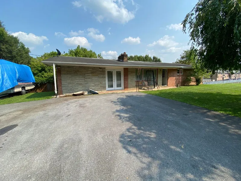 arge brick ranch with tons of potential being sold ''AS IS''. Property is a 4/5 bed 2 bath sitting on .51 acres with the back yard coming to a creek. 3/4 bedrooms upstairs and a large bedroom/finished basement downstairs. Property has hardwood floors through out the upstairs that could be refinished. One bathroom up stairs and one bath downstairs. Fenced in pool area with an empty in ground pool that will need a new liner. Plenty of options with this property with some TLC.