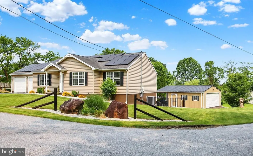 Beautiful Ranch Home with Heated Saltwater Pool & Solar Efficiency. Welcome to this beautifully maintained ranch home, where comfort, efficiency, and outdoor living come together seamlessly. The main level features three spacious bedrooms and two full baths, including an updated bathroom and a walk-in closet. The heart of the home is a charming country-style eat-in kitchen with stunning granite countertops, a chef's pantry, a work station, and all appliances included-refrigerator, washer, and dryer. The kitchen flows directly into the comfortable living room, enhanced by warm hardwood floors that continue through the hall. For added convenience, the laundry area is also located on the main floor, making this truly one-level living at its best. Step outside and enjoy an incredible outdoor entertaining space complete with a heated saltwater swimming pool, a spacious back patio, and a large deck-ideal for summer BBQs and gatherings with friends. The home includes an attached two-car garage with epoxy floors and a detached one-car garage/shed for extra storage or workspace. There's also an additional concrete parking pad alongside the wide driveway. Downstairs, the fully finished lower level expands your living and entertaining space with a large recreation room that walks out directly to the pool area. This level also features a stylish full bathroom with a tile shower and a built-in wet bar, making it perfect for hosting guests or enjoying family time. This super-efficient home is powered by owned solar panels, resulting in average electric bills of just $32 per year. Even better, the system includes a 25-year maintenance plan at no extra cost. Located in an established neighborhood just minutes from major highways and shopping, this home combines low-maintenance living with high-end features.