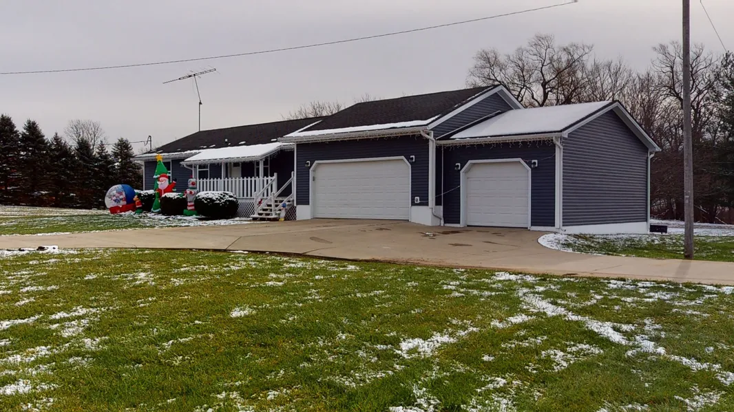 This beautifully updated, three bedroom country home is a must see! Sitting on a corner lot, home features a wrap around paved drive with a three car garage. Home has new siding with insulation wrap. Open kitchen, and vaulted ceilings in living room, new windows and a back up generator. Sitting on just over a half acre you will enjoy the quiet country view on the back deck. Schedule a showing today!