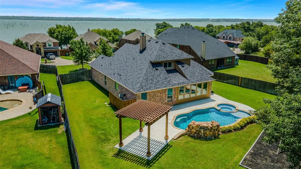 MAJOR REDUCTION IN PRICE! HOUSE WITH IT ALL IN LAKE RAY HUBBARD COMMUNITY! ROCKWALL ISD. $10K TOWARDS DOWN PAYMENT WITH FULL PRICE OFFER. Built in 2015 on a half-acre lot, Mainly a one-story 2,723sf 4BR; 3Full Bath; Dedicated Office; spacious Sunroom; Formal Dining and Nook; 2 Car Garage; Much of house is floored with beautiful wood-like Tile. Two-year old pool with sauna and waterfall; raised Pergola with power; Incredible playground with equipment that conveys; and so much more! Property situated on a greenbelt with mature trees that shade the playground. Lake Ray Hubbard is literally across the street. Blue Haven Way is very private with no through traffic. Spacious kitchen with granite, lots of upgraded cabinets, and stainless appliances. Great shopping & restaurants plus great location. Top rated Rockwall Schools and resides County of Rockwall. Run to see this beauty!
