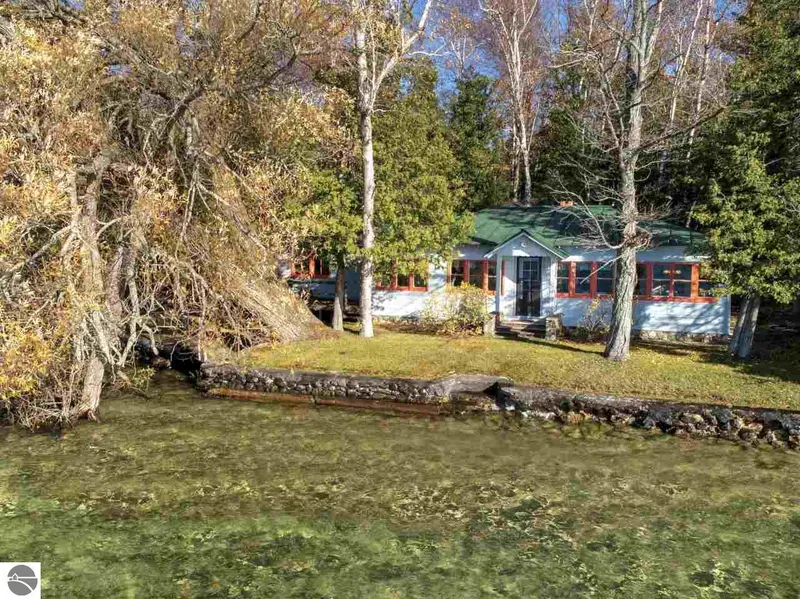 Unique and Rare Opportunity to have your home be over a stream and just a few feet off Torch Lake. This charming vintage cottage is tucked in the woods with a stream running along the north side of the property, an extremely private setting and very peaceful. Cottage features an original field stone fireplace for cozy evenings. A sun porch runs along the front of the house with expansive lake views. Country kitchen is light and bright with dining area on lake side. 3 bedrooms home also has a bunk house built directly over the stream - fall asleep to the sound of rushing water. This is not a cookie cutter cottage, its an amazing opportunity!
