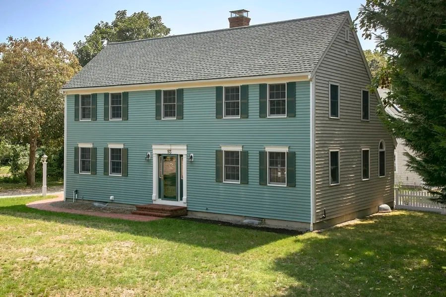 Outstanding value less than 1 mile to Nauset Beach. Set nicely back off of the road, this unique custom built Saltbox Colonial offers an open plan with soaring cathedral and vaulted ceilings, skylights, and hardwood floors throughout. The kitchen is well designed with custom cabinetry and far more than ample space. The Family Room/Den has French Doors that are in keeping with the open flow but allow for privacy when needed. Double sliders opposite the living room fireplace open to a fenced and hardscaped "court yard" with gardens and a brick terrace and stacked stone wall. Upstairs, along the Gallery, the bedrooms are large and both the Primary and Guest feature private en-suite baths. The Primary's bath has double sinks and a separate shower and jetted tub. Outside the detached 2 car garage is barn-like in scale. The deep bays and design allow for a workshop and above is a studio just w...