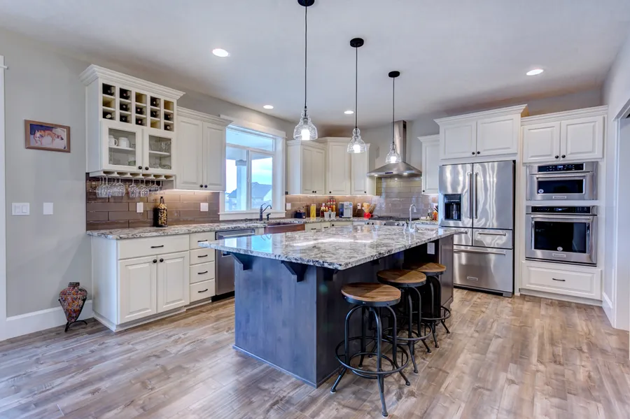 From the moment you walk in you will love the attention to detail this home offers, including a spacious great room with fireplace and vaulted ceilings, custom painted interior doors, 8" baseboards, wired for surround sound, formal living room, chef's kitchen with granite counter-tops, all Kitchenaid stainless steel appliances, wine cabinet & cooler, 2 sinks (1 copper), center island and huge pantry. There is an office, 4 bedrooms and 2.5 baths, including a large master suite with double doors, walk-in closet, ceiling fan, dual sink vanity, soaking tub and beautifully tiled shower. You will find plenty of storage in the 3 car finished garage that includes shelving. This half acre lot has been fully fenced with block fencing and a lovely gate, with plenty of room for the kids and pets to play. There's a covered patio area in the back with stamped concrete for entertaining and landscaped i...