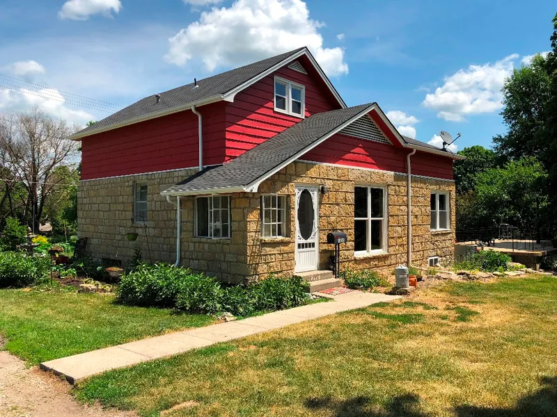 Lots of character with this stunning, one-of-a-kind home! Quality construction with beautiful stone exterior, thick stone foundation, and stone retaining walls. Large 2 car detached garage and workshop with stone exterior and a concrete roof which serves as a large patio perfect for entertaining. This 1.5 story home features a living room with a fireplace, dining room, kitchen with appliances, full bathroom, and one bedroom on the main floor. Upstairs you will find 3 more bedrooms and a half bath. The full, partially finished basement adds to the living area with a rec room, wet bar, and bathroom. The home is situated on a half-acre lot that is well landscaped with mature shade trees and the perfect garden spot. 6 fruit trees including pear, red apple, golden delicious, purple plum, red plum, and peach. Located a few blocks from Moberly Park and the swimming pool. Other details include a...