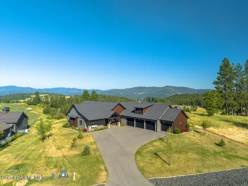 ONLY STANDING HOME IN CDA NATIONAL RESERVE WITH AVAILABLE CLUB MEMBERSHIP. Situated on a level, 0.54 acre parcel with gorgeous golf and mountain views, this 4 bdrm/4 bath mountain modern craftsman includes 3,831 sq ft of living space. Open & inviting great room with vaulted ceilings, beam accents and sleek gas fireplace, chef's kitchen with quartz, gas cooktop, double wall ovens, and built-in bar. Massive master suite with dual walk-in closets and spa-like bath. Dedicated home office plus two additional main floor bedroom suites. The upper level includes double bunk beds, a full bath and large family/bonus room - a great flex space for kids or extended-stay guests. Expansive covered patio w/hot tub overlooking the golf course and mountains beyond. Oversized 4+ car garage provides ample storage. Club members will enjoy world-class golf, dining, hiking/biking trails, state-of-the-art fitness center, pool, sport courts, waterfront lake house, hunt club and more.