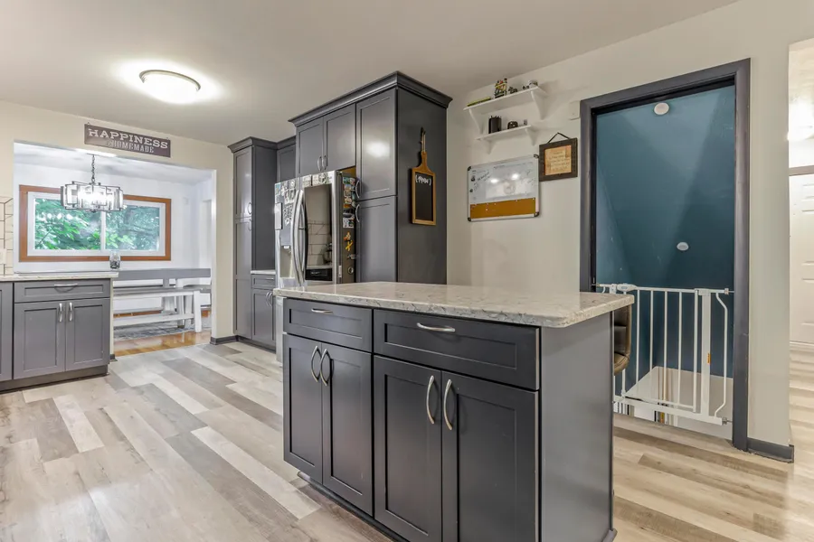 Beautiful hillside ranch with gorgeous open floor concept, large rooms and a beautiful remodeled kitchen with new appliances, freshly renovated home. A large fenced patio with a nice hot tub great for entertainment. Lower level is completed with family room and bath! New windows and all new lighting and electrical installed in 2020. More pictures to come. Showing starts 09/20/22. Seller will pay $2000 towards closing cost.