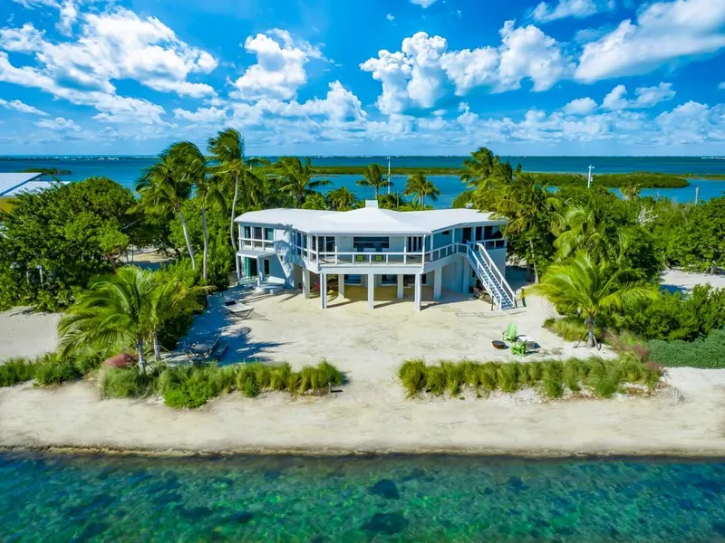 Paradise found on Long Beach! Picture perfect open water views at every turn in this beautifully remodeled home. On the main level, you'll find a breathtaking kitchen designed by D'Asign Source with top-of-the-line appliances, solid cherry cabinetry and quartz countertops. A wall of windows in the great room capture mesmerizing sea views. Sliding glass doors welcome you onto an expansive balcony overlooking miles of turquoise ocean. Split bedroom floorplan with 2 master suites. Remodeled bathrooms with fine fixtures and travertine. Guests will appreciate the private downstairs 1 bedroom 1 bath guest quarters. Solid concrete construction with impact windows and doors. 3 central ac units. Private, over .5-acre lot. Your very own slice of paradise with private beach, perfect for launching kayaks and exploring the surrounding nature. Truly a turn-key property ready for your enjoyment!