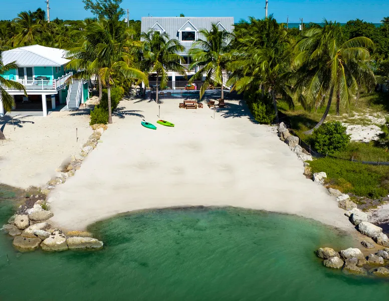 Welcome to Casa de la Playa in beautiful Grassy Key! Nestled on over half an acre, down a winding, manicured driveway enveloped in lush tropical landscaping, this spectacular property encompasses an elevated island lifestyle. Boasting a private sandy beach and endless Open Water Views, this fantastic Florida Keys paradise would make an excellent forever home, or income-producing investment property. Inside, the sprawling interior is bright and welcoming and features 4 generous bedrooms and 3.5 bathrooms, providing ample space for comfortably hosting family and guests. The open-concept main living area lends itself to entertaining with a spacious great room flowing into a well-appointed kitchen, complete with stainless steel appliances, abundant storage, and large kitchen island with seating. An expansive veranda on the second level offers spectacular views of the sparkling pool, beach, a...