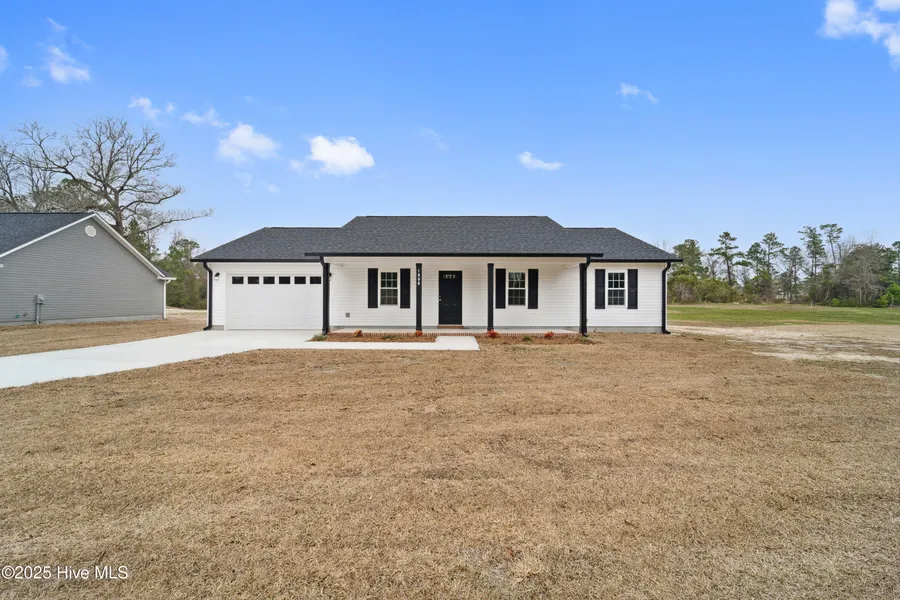 This beautifully built home features stainless steel appliances, including a refrigerator, and elegant LVP flooring in the living areas with plush carpet in the bedrooms. Enjoy the convenience of wood shelving in closets, recessed lighting throughout, and a single-car garage. The spacious .52-acre lot includes a charming covered front porch and a cozy raised concrete patio in the back. The master bathroom boasts a walk-in shower and double vanity. Additional features include black gutters and a well-crafted design. Call for more details!