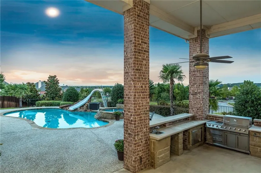 The views from the patio are amazing. What a great place to unwind after a long day. Then down the steps to enjoy the pool or the spa. Dinner outside tonight? No problem, just head over to the outdoor kitchen and fire up the grill. The pool bath and shower are close by as well. Prefer dinner inside this time? The large cook's kitchen is perfect for a chef or a beginner. And since everyone always ends up in the kitchen the large dining area and breakfast bar provide lots of seating. A movie in the media room or games in the game room is the perfect way to round out the day. When the day is done and it's time for bed, your master suite with spacious master bath and double shower await. It's good to be home.