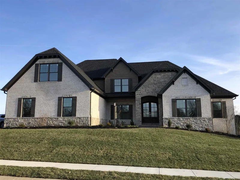 Incredible open plan with "Modern Farmhouse" touches impeccably built by Ron McGillem. The exterior consists of brick with stone watertable and gables with shake siding and standing seam metal porch roof accented by brackets, korbels and shutters to provide that farmhouse appeal! Inside you'll find 9" hand-scrapped hickory hardwood flooring throughout the main floor and lower level. The chef's Kitchen has full height custom Amish built cabinets with garnite countertops, 60" free-standing Wolf range/oven with Sub-Zero refrigerator. The Kitchen features unique walk-through pantry cabinets into a hidden full-sized walk-in Pantry. Off the Kitchen is the Hearth Room with a full height stone fireplace & beams that follow the sloped ceiling. The 12' tall Great Room features another full height stone fireplace with built-in bookcases on each side and beamed coffered ceiling. Off the 12' tall Foy...