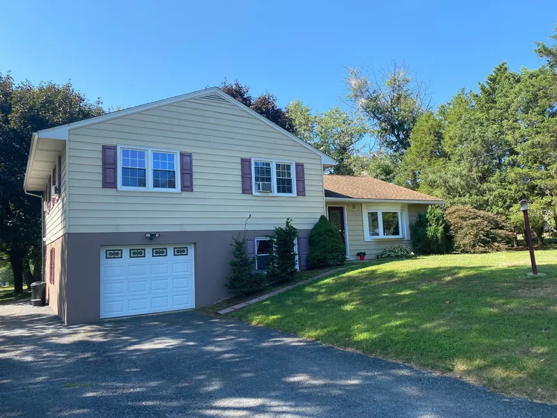 This 4 bedroom split level home is situated on a rural lot with beautiful views! This home offers hardwood flooring in all 4 bedrooms, living room, and dining room. The main level consists of a large living room, dining room, and kitchen. The living room has recessed lighting and a bow window. The dining room also has a bow window. The kitchen has light oak cabinetry, recessed lighting, snack bar area, 23 cabinets and drawers, and tile countertops. The upper level consists of 4 bedrooms and 2 full baths. All bedrooms have hardwood flooring. Many have ceiling fans and plenty of closet space. The master bathroom has a shower stall. The lower level consists of a large family room and a combination laundry/powder room. The family room is carpeted, has recessed lighting and crown molding. The laundry room/powder room has tile flooring and a floor drain. There is a back door that leads to the level back yard that is perfect for your swing set, pets, or summer picnics. The unfinished basement houses an oil furnace and a 2 year old water pump. Other highlights include a 12 year old roof and replacement windows.