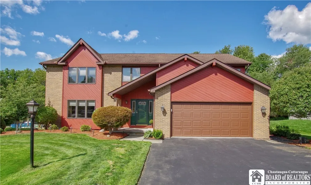 Custom built, one owner home set on a serene cul de sac in West Ellicott. Take advantage of all that West Ellicott has to offer including lower tax rate, public utilities, close proximity to both Jamestown and Lakewood for shopping and dining needs and in the Southwestern School district. This contemporary styled home has approximately 1400 additional finished square footage not listed in the assessors role. Three finished levels of living space offers plenty of room to fit your lifestyle. Main level features a formal living and dining room, half bath, and the gathering area. This open space has cathedral ceilings, wood burning fireplace, dining area, family room and kitchen. The kitchen has ample cupboard and counter space with additional room in the pantry and comes fully equipped with modern appliances. The entire space is naturally lit via skylights, many windows and sliding glass doors. The second level is home to bedrooms, loft space and baths including the master en suite. The basement has been finished and has walk out and window egress. Your outdoor oasis awaits! Heated inground pool, pool house, multi tier decking AND room to play! More than a home, it's a Lifesytle!