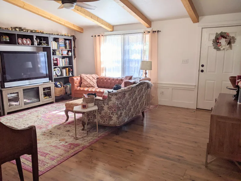 This charming 3 bed/2 bath home sits on .55 acres with tall Pine trees, junipers and oaks. The interior boasts a split floor plan with no interior stairs, wooden ceiling beams, large walk-through primary bedroom closet and laundry room. RV parking and hookups, circular driveway and covered ramada and patio make for the perfect place to enjoy the abundant wildlife wandering through. A new retaining wall in the backyard adds dimension and terraced feel. Ample parking, No HOA. Ready for full-time living, part-time living, or rental property.