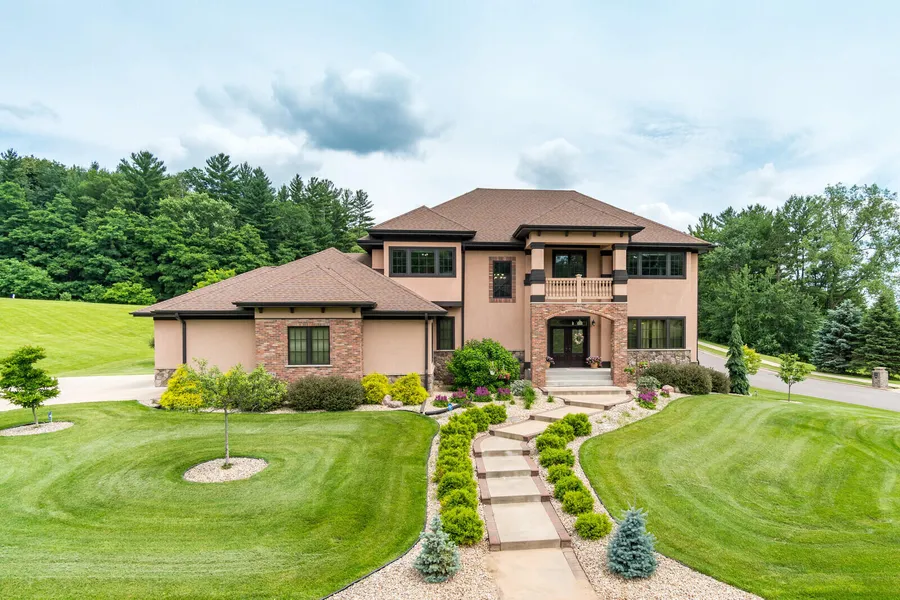 This remarkable estate, crafted with meticulous attention to detail, showcases exquisite architecture and the finest materials. From grand stucco facades to expansive interiors, it exudes opulence and sophistication. The ornate foyer opens to a grand staircase and an elegant formal dining space. The interconnected kitchen, dining, and living rooms are highlighted by a stunning gas fireplace, and a vaulted ceiling with expansive windows that flood the space with light. Chef's kitchen with island, custom cabinetry, and adjoining sunroom. Master en suite with walk-in closet, soaking tub, tiled shower, and double sinks. LL with full windows, provides extra living space, additional bedrooms. Spacious, manicured landscape features precise pathways, and well-placed foliage. Many more features.