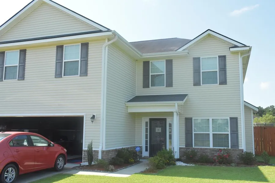 Beautiful home located on a Cul-de-sac in Horse Creek Farms. The Troupe II floor plan features a formal dining room at the front of the house with bay windows, arched doorways, coffered ceiling, chair rail, wainscoting and wide plank hand scraped laminate wood floors which are also in the living room and foyer entry. The large living room has a gas fireplace and ceiling fan. In the kitchen you will find beautiful custom cabinetry, granite counters with a tile back splash, stainless appliances and arched openings to see into the living room, upstairs youll see the hge maser bedroom with a sitting area, master bath with double vanities oval tub and shower stall, upstairs laundry room.
