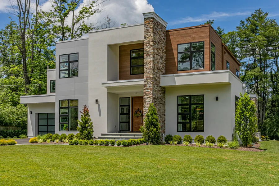 This recently-built modern masterpiece enjoys a premium location between Carnegie Lake and the campus of Princeton University. The Riverside neighborhood is prized for its large lots, old growth trees and low-traffic serenity, an attribute not often found this close to so many attractions! In line with the level of luxury one would expect of this address, the striking residence is the pinnacle of chic style, top-tier quality and effortless functionality. New plantings, a circular hot tub and sculptural arches soften the crisp lines of the overall architecture and stone patio. Remarkably tall windows bring the scene indoors and make the open layout with 10-ft ceilings and seamless white oak floors even more dramatic. With waterfall-edge Quartz atop lacquered cabinetry, the chef-pleasing kitchen is polished enough to share space with the great room's gleaming fireplace statement wall. Styl...