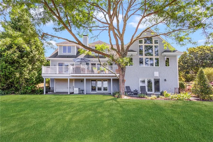 Serenely nestled in the Compton Cliffs neighborhood, sits this spacious, stunning, contemporary 3-bedroom, 2.5 bath with views from every room. Upon entering the 2500 sqft home, you are welcomed into a sunlit open floor plan waiting for you to host gatherings with family & friends while delighting in the breathtaking views of the Sakonnet River. The first-floor great room offers a gas fireplace with an adjoining sitting room. Tucked under the cathedral pine barrel ceiling is the gourmet kitchen which boasts granite counters and cherry cabinetry with a large dining area. Laundry room is off the kitchen. 1st floor owners suite includes an ensuite bathroom that opens to a maintenance free viewing deck with garden and water views. Custom walk-in closet completes this private space. 2nd level offers two additional bedrooms plus an exceptionally large bonus room that can be used as a gym, offi...
