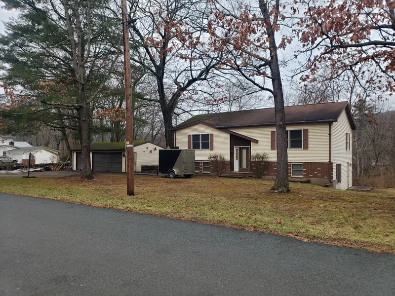 Just recently painted inside, 3 bedrooms, an office (possible guest/fourth bedroom), 2 bathrooms, a living room, dining room and a kitchen with a large commercial stove, party room with a bar, and laundry room are waiting for you on 2 levels in this raised ranch home. The house is modular on the top level and stick-built on the bottom level. Natural gas heating. 3 car garage. Just enough space outside to take care of, play with the kids, and dogs, grow a little garden, and so much more! Close to a Delaware River public Access. Close to schools, shopping, and public transportation. A neighborhood of the Hawks Nest. Don't hesitate! Make an appointment today to see it!