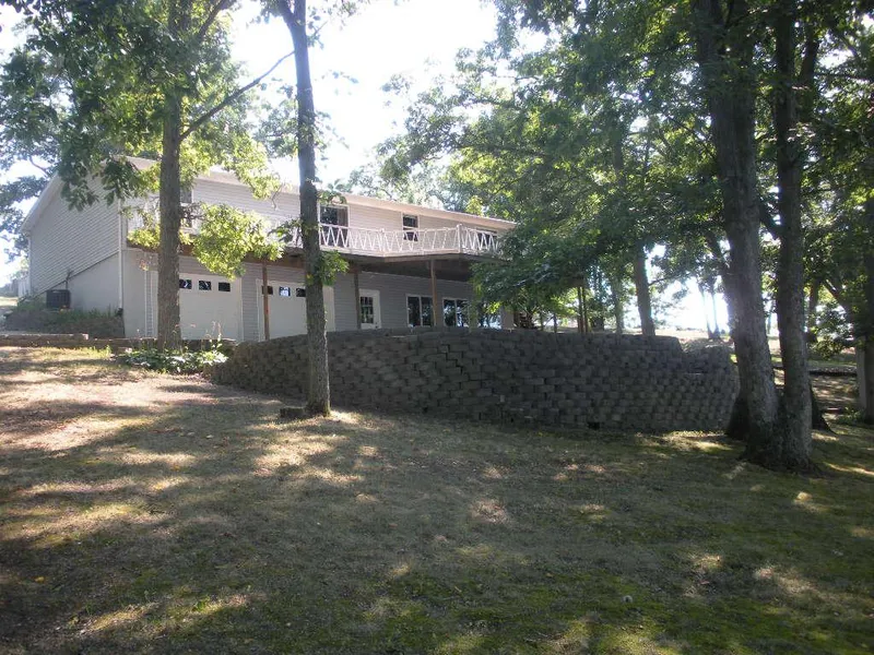 Large Waterfront lot with approximately 150 ft. of shoreline in protected no wake deep water cove. 300 sq. ft. dock with boat lift. Grinder pump replaced in 2014. U shaped wooden deck wraps around three sides of the house, with a large patio and fire pit at ground level on the lake side of the house. This four bedroom, three bath home is the perfect summer get away. Nice two car garage with plenty of storage on the lower level. Mature trees with lots of shade and privacy.