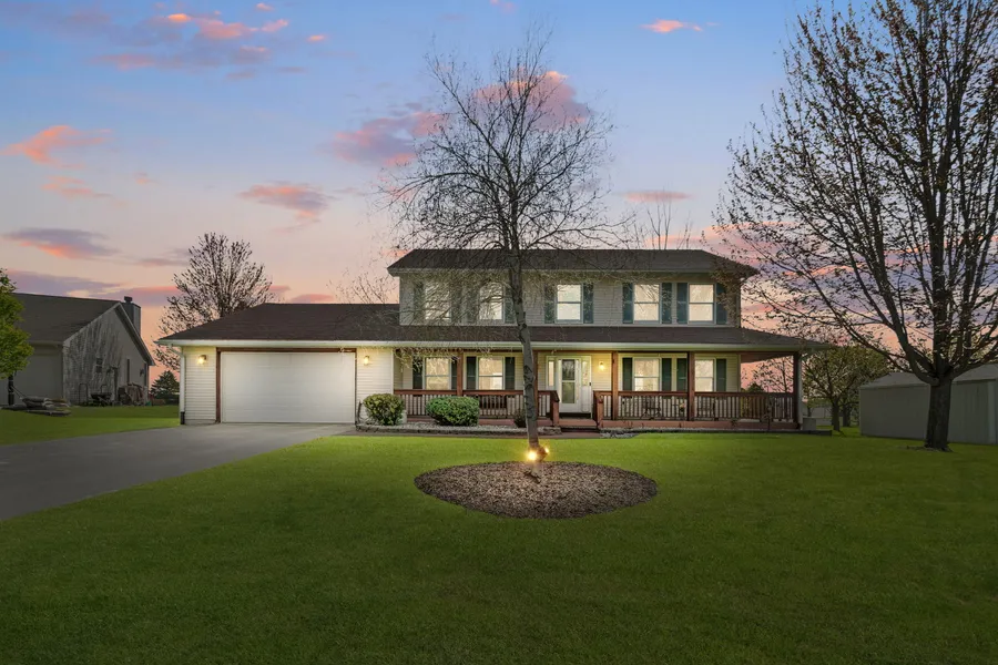 Nestled on a quiet cul-de-sac this country colonial sits on .5 acre lot, boasting nearly 3,300 sqft of living space w/4 BRs, 2 full & 2 half BAs. Foyer w/HWFs, LR w/GFP, DR, FR, an eat-in KIT & powder room make up the ML. Upstairs, the generously sized primary suite has walk-in closet w/laundry hookups & en suite bath. 3 add'l BRs & full bath complete the UL. The LL is an entertainer's dream, featuring a Rec room w/bar area, projector, screen, & built-in speakers. Rounding off the LL is a 2nd powder room & a large bonus room great for a home gym or office. Enjoy the outdoor living w/wraparound front porch, a 3-tier deck overlooking the backyard w/in-ground pet containment. The 4-car tandem garage w/rear garage door to access outdoor toys & equipment. Park & soccer fields minutes away.