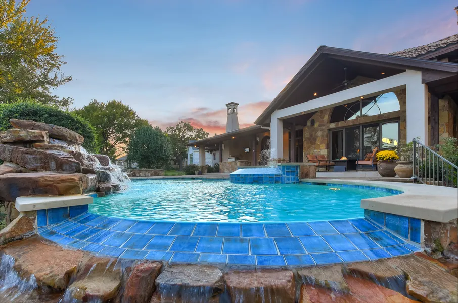 Grand one story on the first fairway of the gated, golf community of Cimarron Hills. Un-paralleled quality and finishes with stunning architecture throughout. Multiple rooms with beamed and coffered ceiling detail, natural stone columns, custom cabinetry, arched entries, wooden casement windows, and rich wood paneling in the private, dedicated office. The great room, formal dining, kitchen, and wet bar seamlessly flow into a grand entertaining space. Room to build a casita/fourth bedroom in the back. Vacation in the backyard oasis with the pool/spa combo that features an infinity edge stone waterfall, stacked stone waterfall, and attached spa. Multiple outdoor living spaces, outdoor kitchen, and masonry firepit and seating wall complete this perfect backyard. A large group of oaks just beyond your fence to give you privacy from the golf course beyond for the best of both worlds. Luxury lifestyle in this private country club community which includes a signature Jack Nicklaus golf course, spa, tennis courts, exercise facilities, and dining room. Cimarron Hills is located in the charming, but booming town of Georgetown Texas.