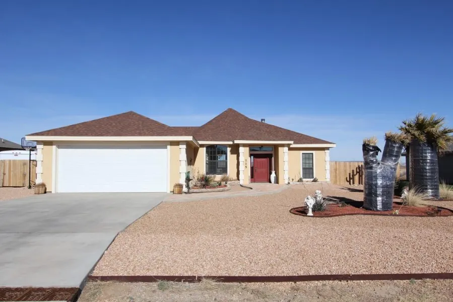 Situated on over half an acre within Toronto Creek Estates is this beautiful stucco home. Built in 2011 by Preferred Quality Homes, the home is flawless with all attention to detail. With over 2,000 square feet, 3 bedrooms, and 2.5 baths, the home has 18 x 18 tile throughout every room, 10 foot ceilings, and lots of large windows to draw in the natural light. The entrance welcomes you into a large living room and formal dining area, fireplace, and captivating views of the nearby mountains. The open floorplan is great for entertaining with the kitchen offering great space for cooking and storage. The tray ceiling in the living room and master bedroom adds an elegant touch to the home. Granite countertops and custom cabinets compliment the kitchen and a breakfast bar with enough room for 4-5 barstools. Adjoining the kitchen is a nice area for either a breakfast nook or comfortable sitting area. The master bedroom suite is one of the main highlights to the property with a spacious room, large walk-in closet, and attached bathroom. The master bathroom includes a two sink vanity with granite countertops and dressing area, garden tub, linen closet, and tiled walk-in shower. The guest bedrooms are also spacious and have great closet space with a full bathroom situated between the two bedrooms. The guest bath has granite countertop, tiled walls in the shower, and large linen closet. The amenities continue with the enormous back yard over 150 feet deep, new cedar fence, covered back patio, xeriscaped front yard with sprinkler system, large palm trees, manicured flower beds, and flagstone walkway. The gorgeous mountain views and quiet neighborhood are another reason to view this property. Seller is relocating and must sell quickly and will consider offers. Call today for an appointment.