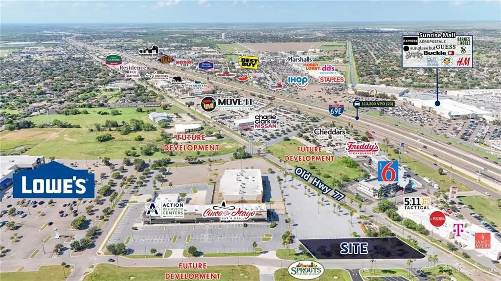 This .5660-acre pad site offers a prime development and retail opportunity in the heart of Brownsville, TX. Located at the busy intersection of Ruben M. Torres Boulevard and IH-69, the site boasts excellent visibility, accessibility, and steady traffic. Adjacent to Lowe’s and surrounded by top national retailers, it sits within the city’s main retail corridor. Its size and location make it ideal for quick-service restaurants, coffee shops, specialty retail, or other small-footprint concepts seeking maximum exposure.