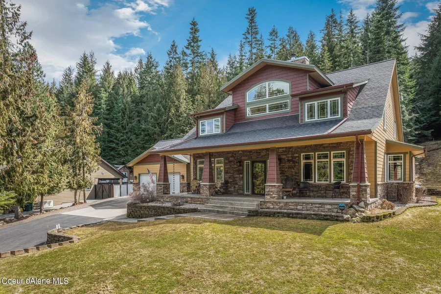 ENJOY LAKE LIVING CLOSE TO TOWN! Nestled amongst the pine trees within walking distance to the Hayden Lake Marina, this classic craftsman boasts exemplary artisan woodwork. Large cased windows &skylights bring the natural beauty and light of your surroundings inside, allowing you to enjoy the abundant area wildlife. The dramatic floor-to-ceiling stone fireplace welcomes guests and separates the entry from the adjoining vaulted family room and chef's kitchen. An office/flex space, dining and mud rooms allow for work and entertaining while a spacious main-floor primary w/jetted garden tub in a windowed nook beacons a private escape. Upstairs boasts 2 bedrooms, a large bright craft room, a separate bonus room and full bath providing ample space for guests, recreating or projects. SS appliances; granite; chef's kitchen; open rail staircase; radiant heat in home/garage; expansive covered back patio; RV & guest parking; wired for generator; NO CC&R's or HOA landscaped w/garden spot; 12 x 16 shed with power; workshop... AND MUCH MORE! Easily add a closet to the craft or bonus rooms for additional bedrooms. Attention to detail and carefully curated appointments speak pride of ownership and welcomes you home to the lifestyle you deserve by the lake!