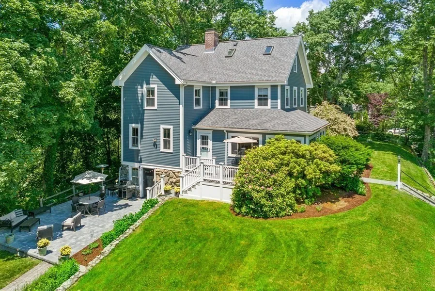 Move right into this turnkey 3-bedroom 2.5-bath 1896 colonial brimming with charm, natural light, high ceilings and hardwood floors, privately situated on a quiet cul de sac near #1 ranked Weston schools, trails and the town center. An updated eat-in kitchen with abundant cabinetry, granite counters, newer appliances and dine in pantry flows into the spacious dining room with beautiful built-in storage. A fireplaced living room with custom woodwork adjoins a family room overlooking an inviting professionally landscaped yard with stone patio, perfect for relaxing or entertaining. The 2nd floor offers a large primary bedroom with en-suite bath, two additional well-proportioned bedrooms, and another full bath. Don't miss the 3rd floor playroom/guest room with built-ins, skylights and home office. Other highlights include a mudroom and A/C. The partially-finished walk out lower-level feature...