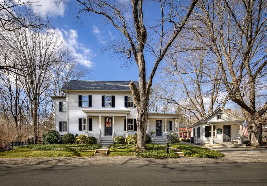 Nestled in the quaint hamlet of Mountainville, this completely renovated 1870 colonial combines period charm with modern comfort. The property, featuring an additional cottage and barn, provide extra spaces and opportunities to blend home and craft in the desirable township of Tewksbury. Set on exquisitely manicured grounds bordered by wood fences and stonewalls, the 4-bedroom, 2.5 bath home is both spacious and cozy. Distinctive features such as wide-plank floors, paneling, molding and cabinetry are met with updated appointments: the chef's kitchen with top-of-the-line appliances, hardwood cabinetry and granite countertops, beautifully accoutered updated baths as well as central air. The septic system is new, and all structures have new roofs allowing for peace of mind along with peaceful country living.