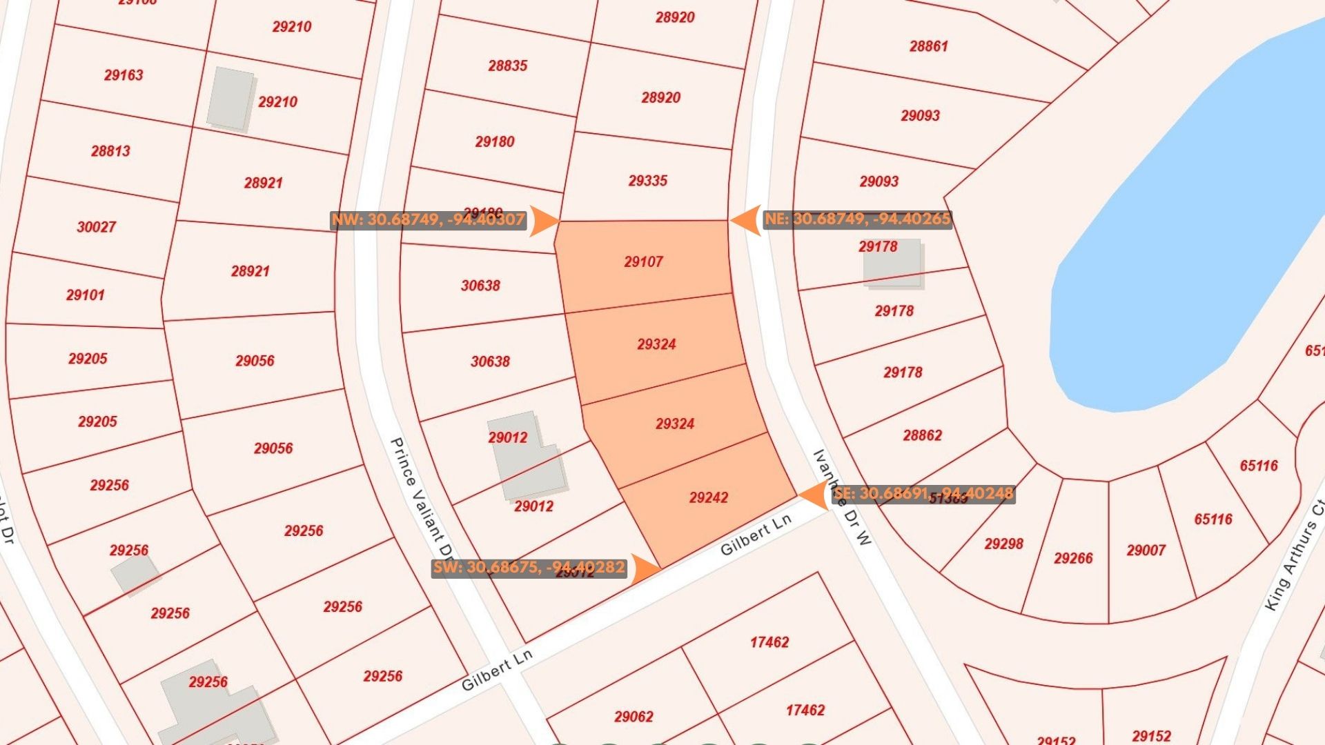 To visit this 0.56-acre quadruple lot for sale in Ivanhoe TX, search West Ivanhoe Drive, Woodville 75979 within on your phone. When you are near the land, search 30.68691, -94.40248 on Google Map to locate one of the corners. Contact our office for surveys (if available), county plat maps, Google Map boundaries and corners, and MapRight.