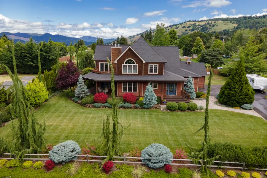 The centerpiece of a highly desirable neighborhood is this stunning custom cedar home with gorgeous landscaping. Douglas Fir wrap around deck with private fenced back yard is great for entertaining. French doors to the master suites on both levels with soaking tubs and outdoor access. Second living room with upper deck. Spacious kitchen with high-end stainless-steel appliances, concrete counter tops, bamboo flooring and travertine tile. Ample storage with 3-car garage and outbuilding/shop.