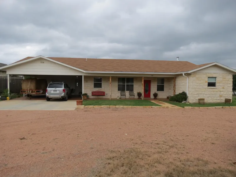 Built in 2010, this Austin Stone home has an open floor plan with a high sloped ceiling in the living room, and 10 ft. ceilings throughout which creates a very spacious atmosphere. The home features 3 bedrooms and two baths, stained concrete flooring and concrete counter tops and an efficient kitchen with built in appliances. There is also an attached utility room and large storage room that could be utilized as a shop/man cave. This home is very energy efficient, and has an earth stove for even more energy savings. The home sits on two lots with plenty of room for landscaping and a large yard.