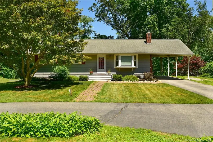 Move right into this well-maintained, three-bedroom ranch just minutes from Lake Pocotopaug - just in time for the new school year! Nicely landscaped lot in a quiet neighborhood. The half-circular driveway in front provides extra parking and curb appeal. The living room, hallway, and all three bedrooms have hardwood floors, with tile in the eat-in kitchen and main-level bathroom. Crown molding and wainscoting are also featured in many of the rooms, in addition to new doors throughout. When you walk inside the front door, you're greeted with an open-concept living room/eat-in kitchen area. The living room features a bay window and a beautiful brick, gas fireplace that heats the entire main level during the winter. In the summer, you will be cooled off by ceiling fans in every room and air conditioning units in the kitchen and bedrooms. The kitchen includes freshly painted cabinets, a stai...