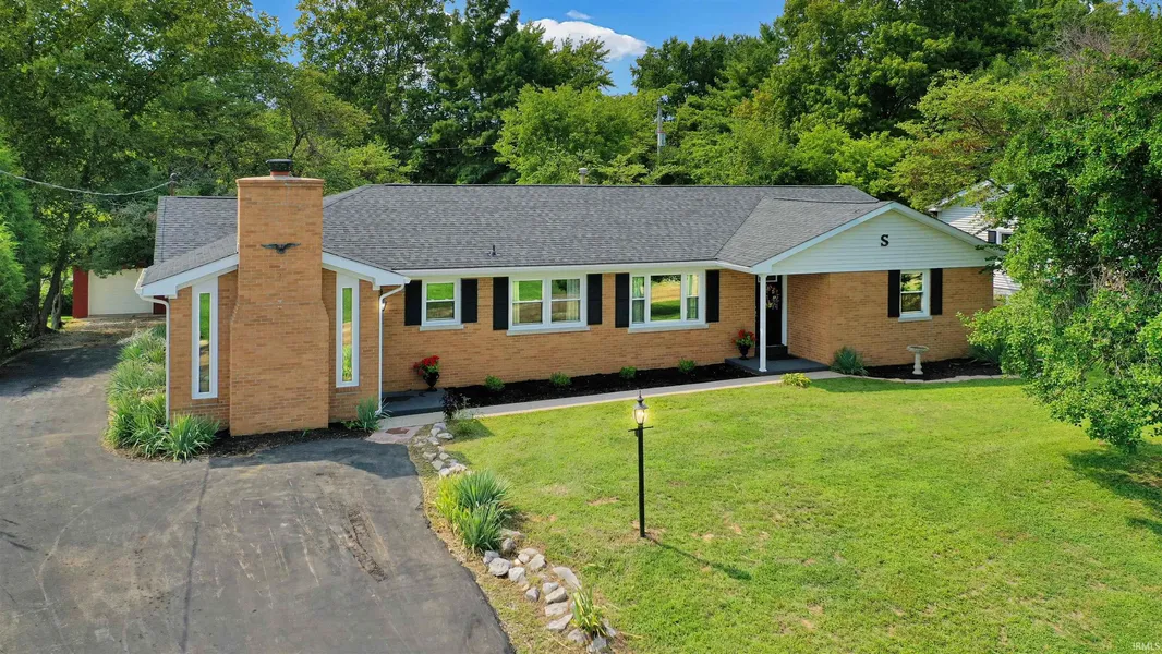 Stunning inside and out describes this home on Sauerkraut perfectly! This Posey county all brick, ranch home has so much to offer! You will rave over the updates made as soon as you arrive! As you make your way to the front door, just inside you will be greeted by a spacious formal living room (all new paint and flooring throughout the entire home) that leads you to the picture perfect kitchen where tasteful colors & fixtures flow! Be sure to note the new stainless appliances that stay with the home. The kitchen also offers eat-in-dining space and a breakfast bar that seats two comfortably! Just on the other side of the kitchen you will make your way into the formal dining room and then continue into the enormous, second living room/ flex room/bonus room, (the choice is yours) fully equipped with a gas/wood burning fireplace and its own heat and ac unit! As you turn back towards the hall you will notice the magazine worthy half bath! Further down the hall you will find the retro tiled, updated, exquisite full bath, and three bedrooms which include the large main bedroom. All bedrooms have lit - full length closets offering you plenty of space to hang your wardrobes! As you venture outside, you will notice the nice private driveway, open patio, the over a half acre lot, OH and the HUGE two car barn with loft above! The garage/barn offers you not only plenty of room to park vehicles , but also room to have a workshop, store your extra belongings up its stairs to the fully floored loft, and more! Immediate possession is available! NEW; GAS FURNACE, GUTTERS/SOFFITS, LIFE PROOF VINYL PLANK FLOORING, CARPET, PAINT, LIGHT FIXTURES, KITCHEN, APPLIANCES, BATHROOM UPDATES, NEWER WATER HEATER, ROOF IS APPROX. UNDER 5 YEARS OLD AND SO MUCH MORE!!!