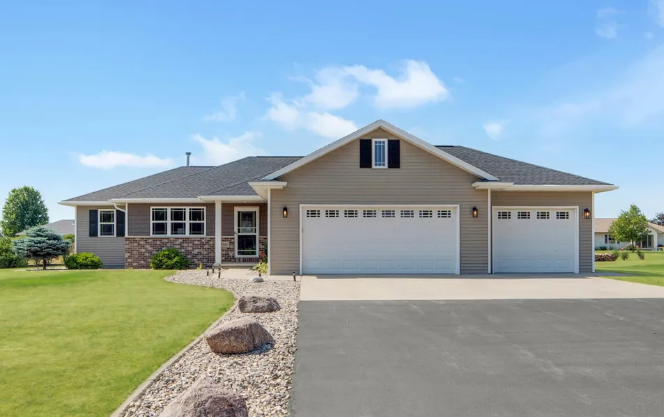 Beautifully landscaped, situated on .58 +/- acre lot this stylish split bedroom ranch offers an amazing open floor plan that makes the interior space feel bigger & brighter! Chartreuse plantings & concrete curbing greet you. Step inside to be greeted by a vaulted ceiling from the oversized GR to the eat-in kitchen. This combination space is perfect for entertaining or just relaxing. Main level included a sun filled GR is flanked w/gas FP, fully applianced kitchen stocked w/cabinetry, center island & walk-in pantry, sliding doors from the eat-in dining area lead to lg patio, primary bdm w/tray ceiling, dual vanity & walk-in closet, and ff laundry w/lockers. Additional features include: drywall insulated & heated garage, lower level w/egress & stub for bath. Offers being reviewed 7/17/2023.