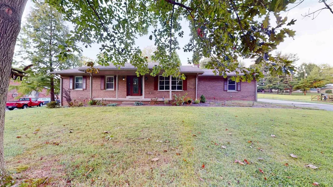 Upgraded brick ranch with a finished basement and 4-5 bedrooms on a half acre lot with shade trees! Detached building 24x34 with an 8' height overhead door and additional 2 car attached garage. Two main level master suites & main level laundry. Covered front and back porches. Home was remodeled in 2012 with a 1000 sq foot addition and the detached bldg. 3 main level bdrms plus a dedicated office with built-in cabinetry and 4th bdrm in basement. Beautiful 3/4" solid hickory hand-scraped wood flooring with ceramic tile in the kitchen and baths and carpet in the bedrooms. The cabinetry throughout the home in the kitchen, laundry and bathrooms is Haas solid wood painted cabinets. Kitchen and all baths have granite counters with undermount sinks. All kitchen cabinets are soft close with pull out shelving. Upgraded SS appliances. Wonderful laundry room with loads of cabinetry and a built-in ut...