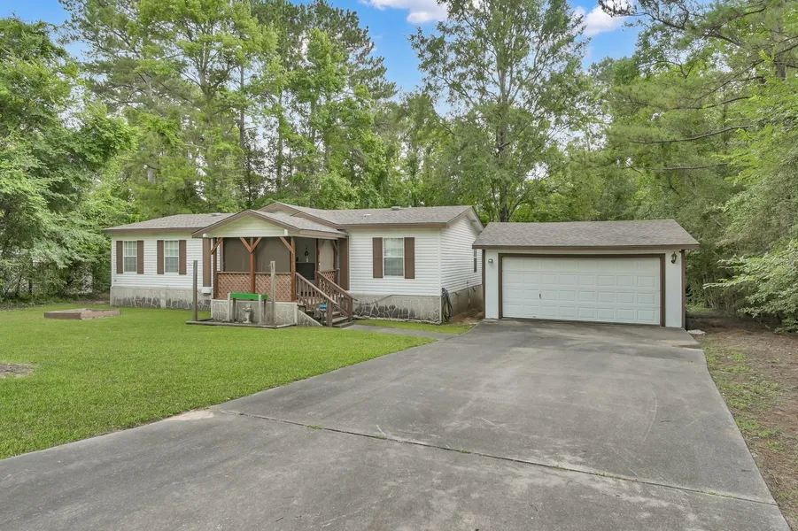 Escape to the countryside in this charming 3 bed, 2 bath home on over half an acre. Sip your morning coffee on the covered front porch with shades for privacy and enjoy the fenced back yard in the evenings. The open kitchen boasts plenty of natural light, cabinets, and pull-out pantry shelves. The primary bath features a hollywood tub, separate shower, 2 sinks, and 2 closets. Stay worry-free with a 4-year-old roof and included refrigerator, washer, and dryer. Plus, a detached garage with a back door to the yard completes this cozy retreat.