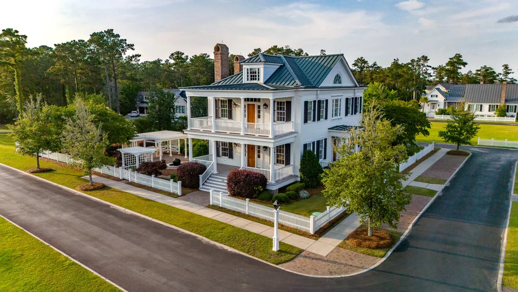 Refined Coastal Living on the ICW. Designed by Historical Concepts, this timeless home in River Dunes offers exceptional craftsmanship and direct access to some of the best boating waters on the East Coast. Set on a premier double lot overlooking a protected harbor just off the Intracoastal Waterway, this residence is a boater's dream—offering quick access to the Neuse River, Pamlico Sound, and beyond. Classic architecture meets modern luxury throughout: antique heart pine floors, detailed wainscoting, dramatic windows, and deep front and side porches that extend your living space outdoors. Brick fireplaces in the living and keeping rooms, a sophisticated kitchen with Wolf, Thermador, and Viking appliances, and a butler's pantry add elegance and functionality. Enjoy stunning harbor views from the primary suite and multiple outdoor living spaces including multiple covered porches, summer kitchen, firepit, pergola, and water feature. The third floor offers a flexible retreat with a full bath and built-ins. Two carriage houses provide garage space for four vehicles—including a lift—and one features a private guest suite. Located in a Southern Living-Inspired Community with 14 miles of shoreline and a top-rated marina, this home is your gateway to year-round boating and refined coastal living in Oriental, NC.
